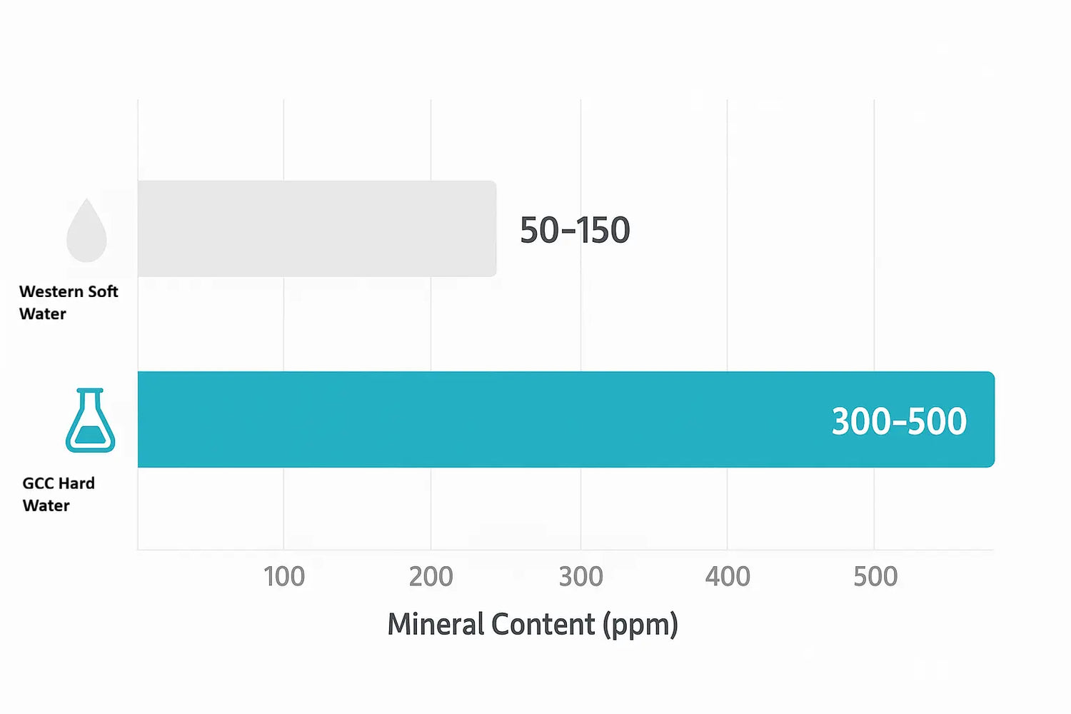 Desalinated seawater, which provides much of the Gulf's drinking water, contains elevated levels of calcium and magnesium.